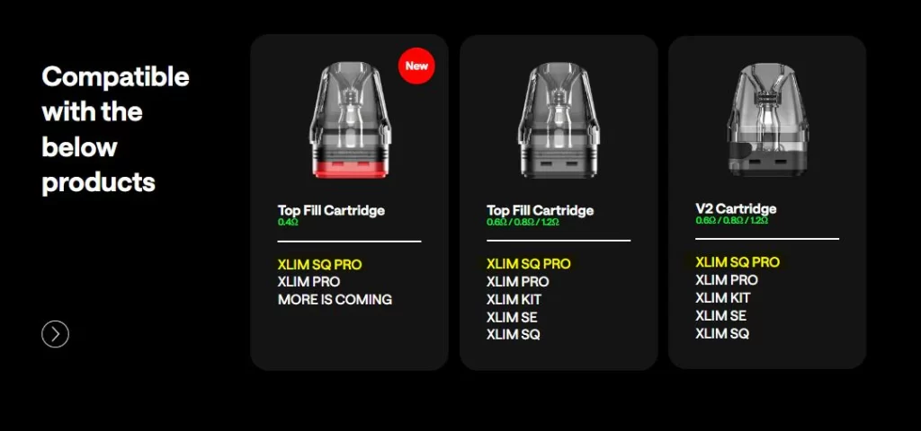 - – OXVA Xlim SQ Pro 2 vape device